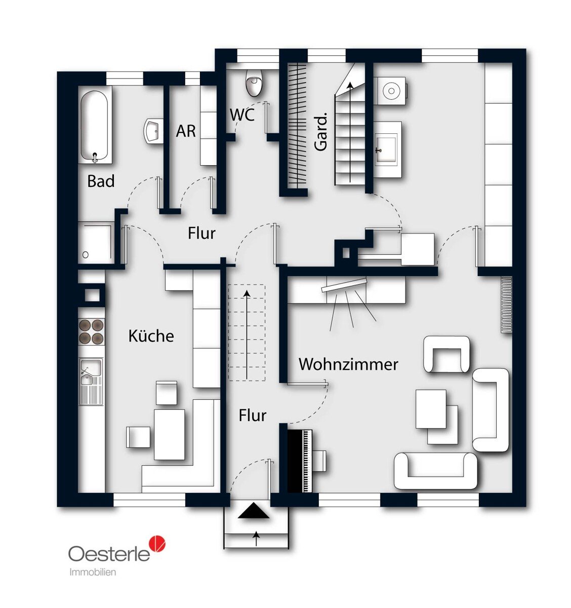 Im Erdgeschoss bildet das große Wohnzimmer den zentralen Lebensmittelpunkt - hell, geräumig und einladend. Die großzügige Wohnküche bietet viel Platz für gemeinsames Kochen und geselliges Beisammensein. Ergänzt wird diese Ebene durch einen größeren Hauswirtschafts- bzw. Haustechnikraum, einen separaten Abstellraum sowie eine praktische Gäste-Toilette, die den Wohnkomfort im Alltag erhöhen. Das Tageslicht-Badezimmer ist mit Dusche und Badewanne ausgestattet und bietet Komfort für die ganze Familie.
