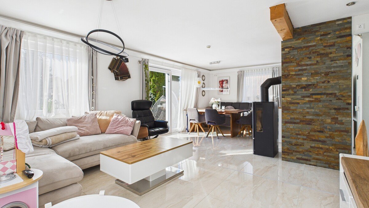 Gemütlicher Holzzusatzofen im Wohnbereich