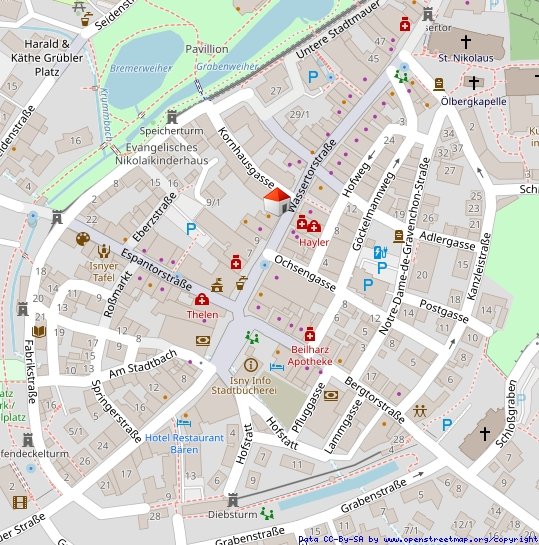Zum Verkauf stehen 3 aneinanderhängende Gebäude im Zentrum von Isny i. A. in der Fußgängerzone. Die genauen Baujahre der Gebäude sind unbekannt, nach vorliegenden Unterlagen sind sie ca. 1900, 1962 und 1978.