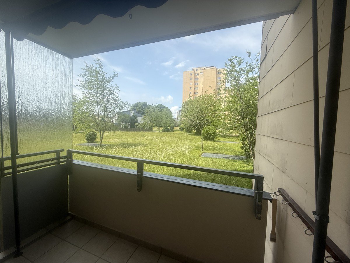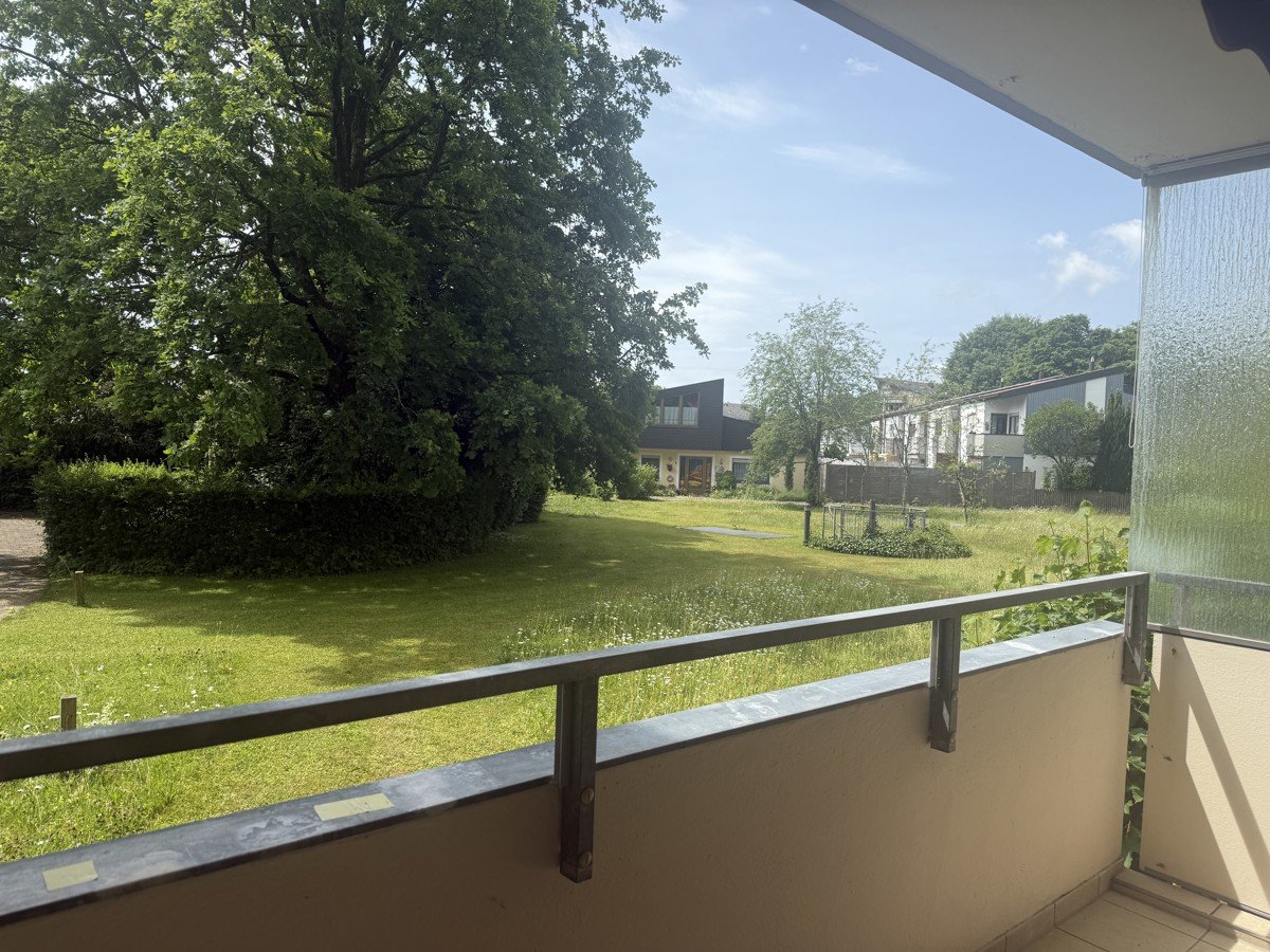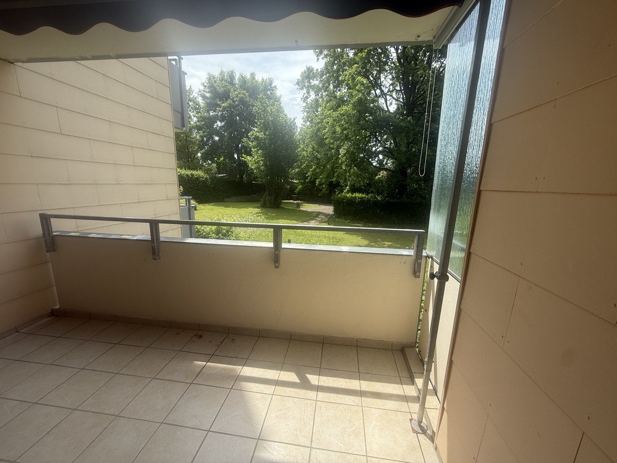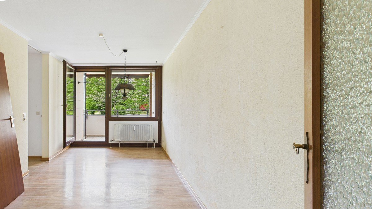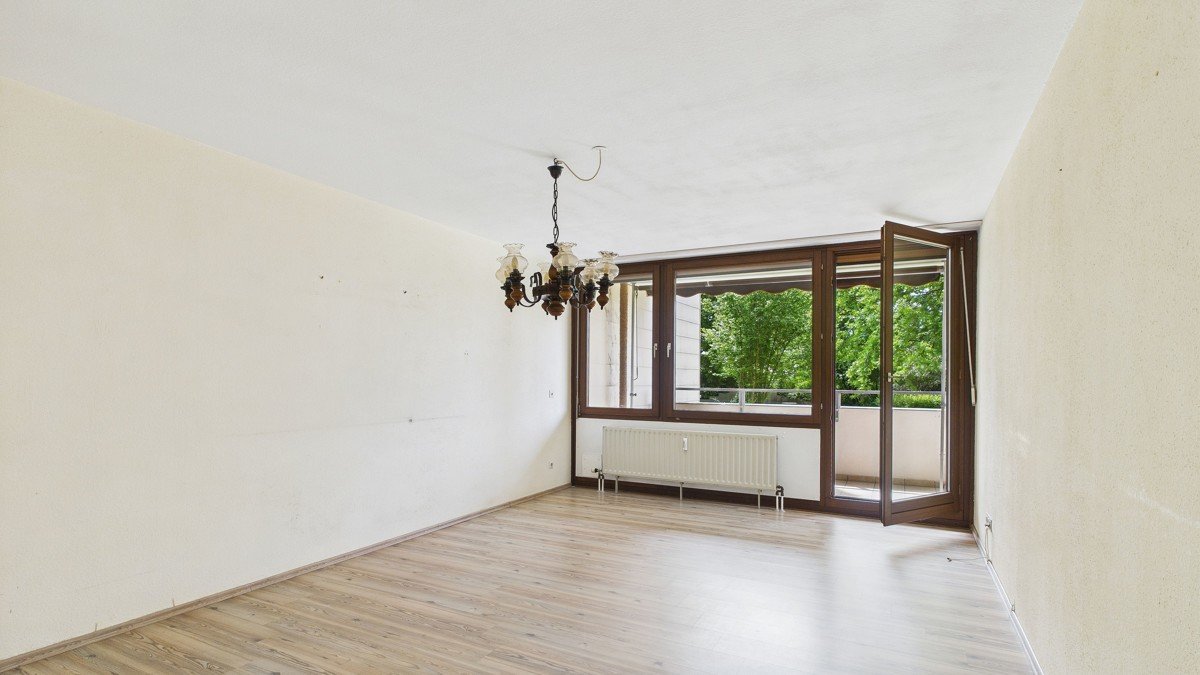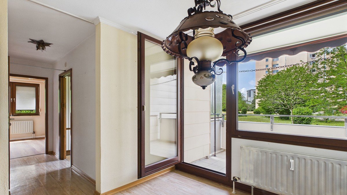 Wohnzimmer: Mit überdachtem Südbalkon und Blick ins Grüne.