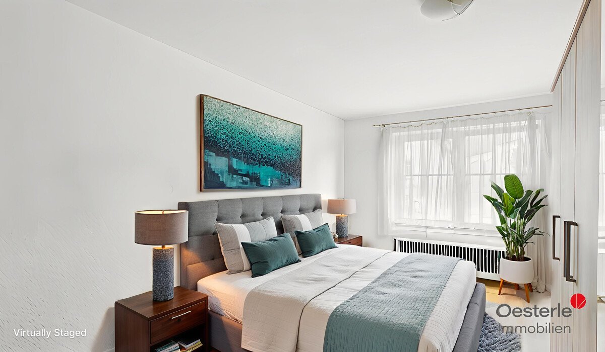 Zum Schutz der Privatsphäre des aktuellen Mieters, wurde Home Staging verwendet; Böden, Wände, Fenster sowie sämtliche Beläge sind jedoch original und lediglich mit einer virtuellen Einrichtung versehen.