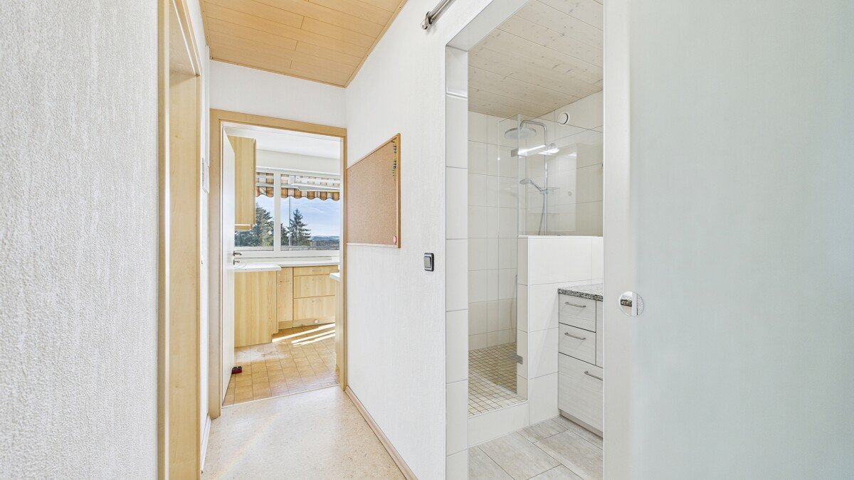 Diese ca. 100 m² große Eigentumswohnung überzeugt durch eine ideale Grundrissaufteilung, helle Räume und eine ruhige Aussichtslage mit Fernblick ins Grüne bis zu den Alpen.