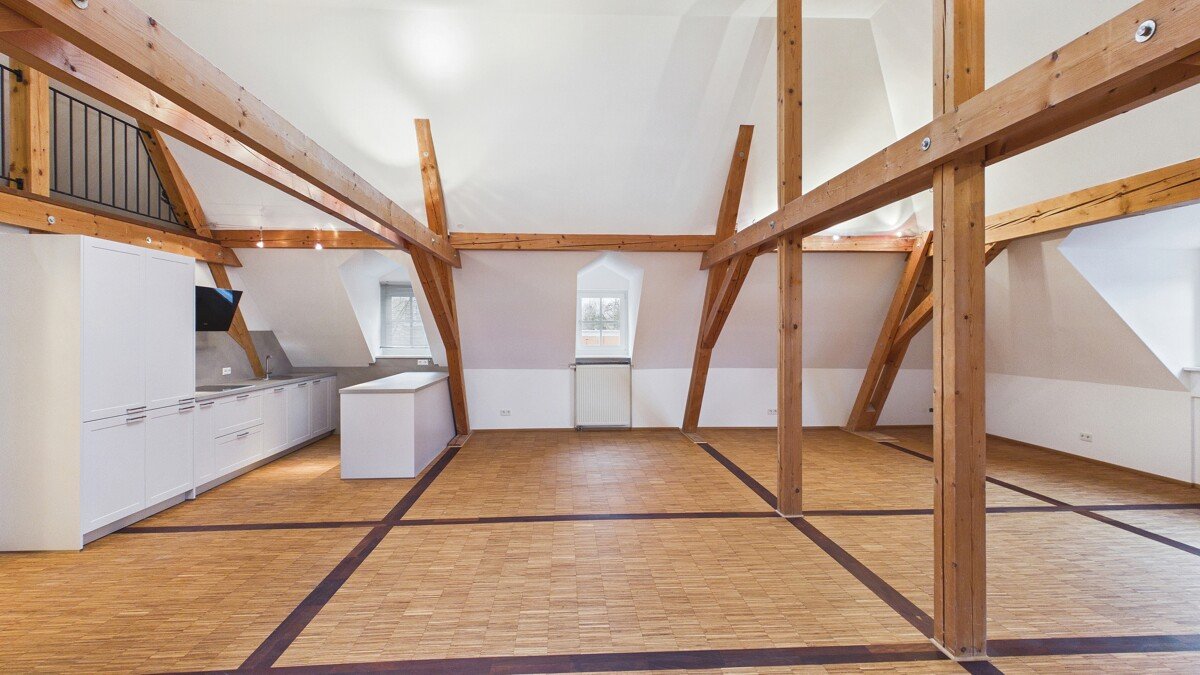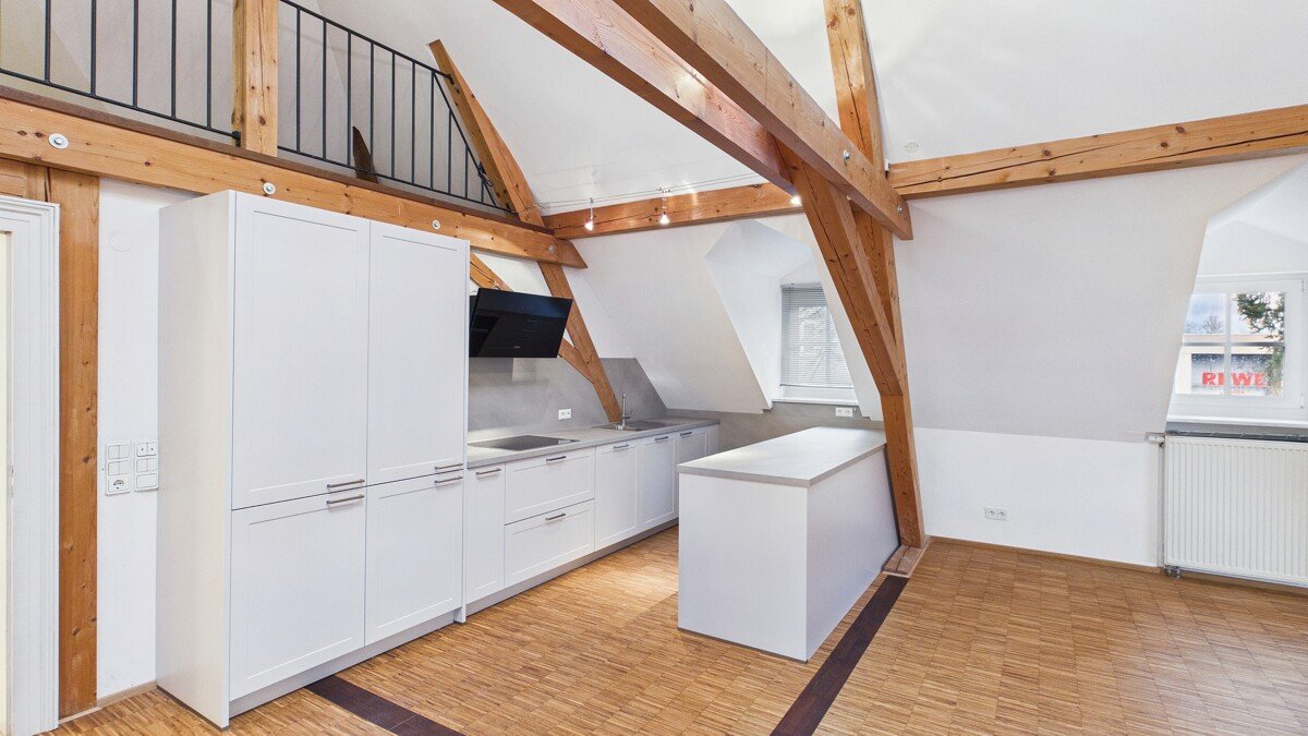 Diese Wohnung eignet sich ideal für Singles oder Paare, die das besondere Flair einer Dachgeschosswohnung mit offenen Holzbalken und großzügigem Raumgefühl zu schätzen wissen.