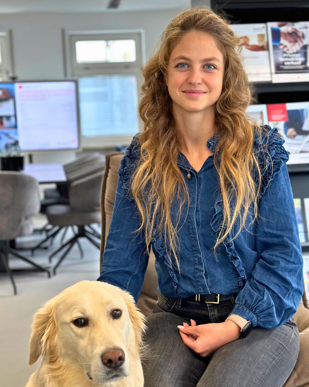 Sie sorgt dafür, dass alles rund läuft – und bringt mit Bürohund Medo gleich noch eine Extra-Portion gute Laune mit